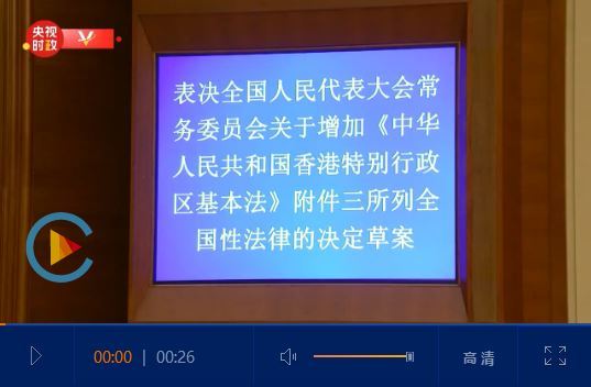 △6月30日下午,十三届全国人大常委会第二十次会议经表决,决定将《中华人民共和国香港特别行政区维护国家安全法》列入《中华人民共和国香港特别行政区基本法》附件三