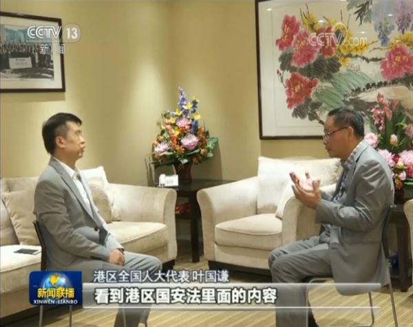 港区全国人大代表 叶国谦:看到港区国安法里面的内容,我是非常地鼓舞,我觉得真的是中央出手,真的是结合到香港现在的情况,如果不是这样,香港的是没有办法长期稳定的,国安法对我们的经济保护是很重要的,香港在国安法的保护下一定能稳定,我们的经济一定可以发展。