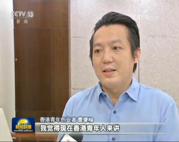 香港青年创业者 曹肇棆:其实我觉得现在香港青年人来讲,是十分幸福的,我们看到了就我们中央对我们主权事务的一种态度,中国人看别人脸色的时代一去不复返了。