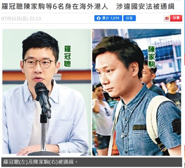 【环球网快讯】香港国安法实施1个月,“东网”刚刚消息称,香港警方正式通缉6名逃往海外的乱港分子,其中包括因惧怕香港国安法而逃到英国的乱港分子、“港独”组织“香港众志”创党主席罗冠聪,“港独”组织“香港独立联盟”召集人陈家驹、“港独”组织“学生动源”成员刘康、去年在赴内地期间卷入嫖娼案件而被行政拘留“嫖到失联”的郑文杰、驻华盛顿的“港独”组织“香港民主委员会”总监朱牧民和“港独”组织“民主前线”前成员黄台仰。消息称,这6人分别涉嫌煽动分裂国家、勾结外国或境外势力危害国家安全。