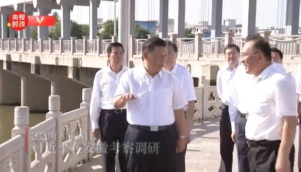 习******总书记18日赴安徽考察调研。当天下午,他先后来到阜阳市阜南县王家坝闸、红亮箱包有限公司、蒙洼蓄洪区曹集镇利民村西田坡庄台,察看淮河水情,走进田间地头,了解当地防汛救灾和灾后恢复生产等情况,看望慰问受灾群众。