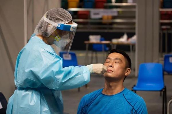 △普及社区检测计划由受相关医护训练的人员采集鼻腔和咽喉合并拭子样本。图源:香港特区政府新闻网