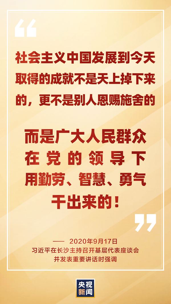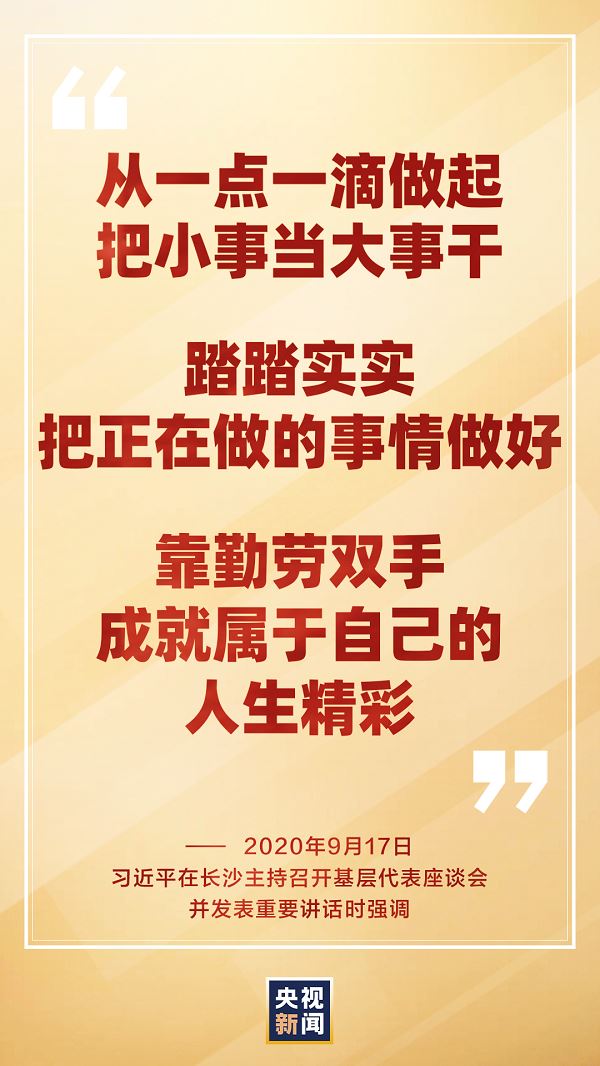 9月17日上午,习近平总书记在湖南省长沙市主持召开基层代表座谈会并发表重要讲话,听取基层干部群众代表对“十四五”规划编制的意见和建议。现场气氛热烈活跃,总书记的很多表述非常提气→