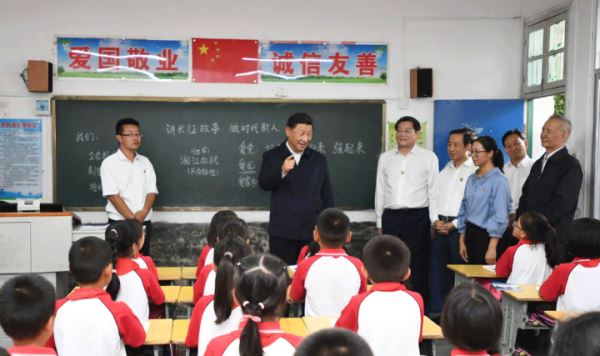 ▲2020年9月16日,习近平来到湖南郴州市汝城县文明瑶族乡第一片小学,同正在上思政课的同学们亲切交流。