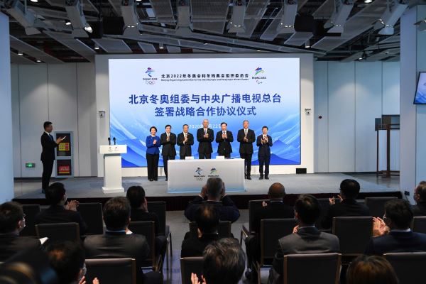 在北京冬奥会倒计时500天之际,2020年9月22日上午,中央广播电视总台与北京冬奥组委签署《相约北京系列冬季体育赛事转播工作框架合同》和《北京冬奥会电视转播科技创新应用及科技冬奥重点专项技术协同战略合作框架协议》,标志着双方冬奥宣传转播报道、科技创新引领合作进入新阶段。