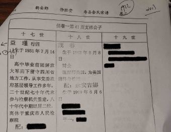 据新安郡静胜堂寿县余氏宗谱记载(如图),十七世:(余)益瑾,行四,生于1931年7月14日,高中毕业前随解放大军南下留守四川省地方工作,从事党委政府基层领导工作多年,二十世纪七十年代末参与检察机关重建,八十年代中期退居二线,离休于重庆市人民检察院。十八世,(余)茂春,生于1962年8月8日,博士,现留居美国,为美国籍终身教授。