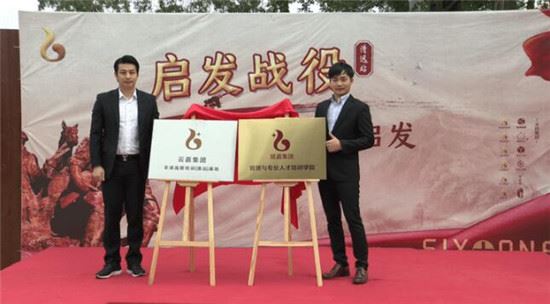 ▲ 云嘉集团总裁严考鑫(左)、陆嘉集团总裁陈天送(右)分别为云嘉全球高管培训基地、陆嘉集团管理与专业人才培训学院揭牌