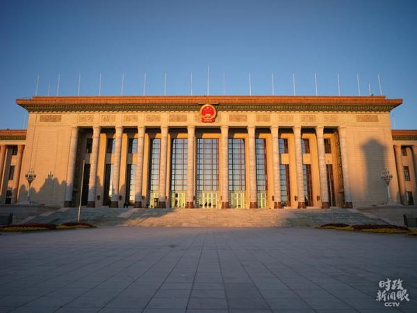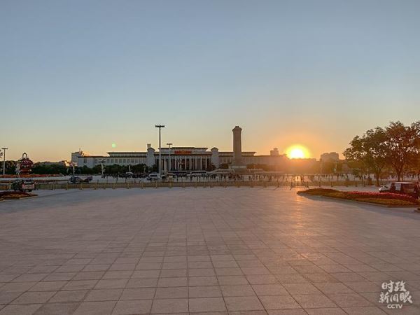 △日出时刻,人民大会堂(总台央视记者杨新禹、彭汉明拍摄)