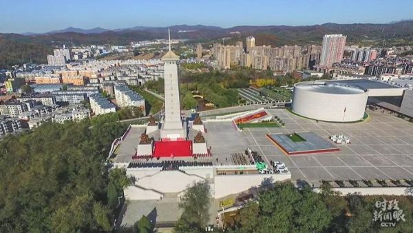 △辽宁沈阳抗美援朝烈士陵园,以习近平名义敬献的花篮摆放在烈士纪念碑正前方。(总台央视记者雍凯钧提供)