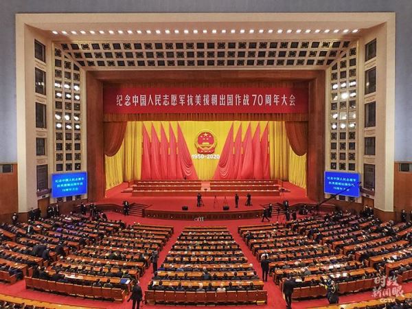23日上午,纪念中国人民志愿军抗美援朝出国作战70周年大会在北京人民大会堂隆重举行,习近平等党和国家领导人出席大会。