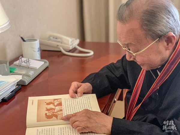 △当天出席大会的曾建徽,曾在抗美援朝期间赴朝鲜采访。这是他正在翻阅当年的通讯文稿。(总台央视记者卢心雨拍摄)