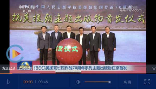 纪念抗美援朝出国作战70周年系列主题出版物首发仪式,10月25日在北京举行。中宣部副部长、中央广播电视总台台长兼总编辑慎海雄出席并为首发揭幕。