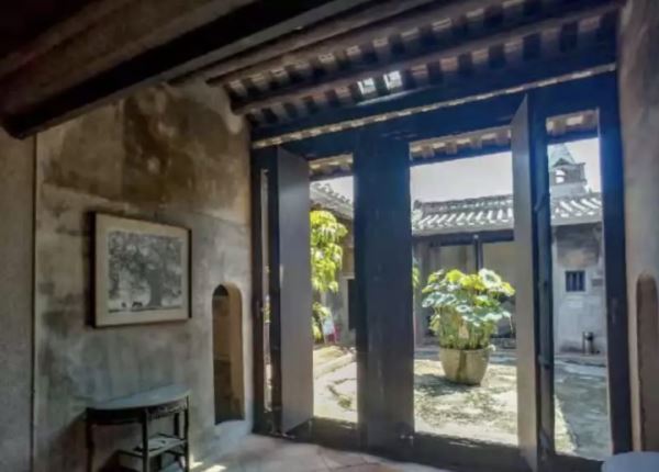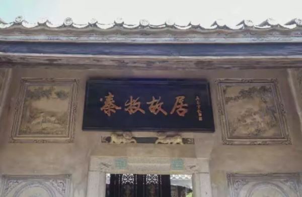 这是一套潮汕传统建筑,俗称“四点金”,有点像北京的四合院。大门气派雅致,门壁上的潮式嵌瓷,历经一个世纪的风吹雨打依然精美。屋檐之上雕栏窗花、青瓦刻石随处可见。大门上面挂有牌匾,有吴南生书记题写的“秦牧故居”字样。
