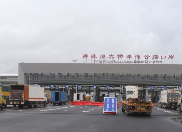 今年疫情以來,經港珠澳大橋出入境貨車數量實現逆勢增長。(記者方俊明攝)