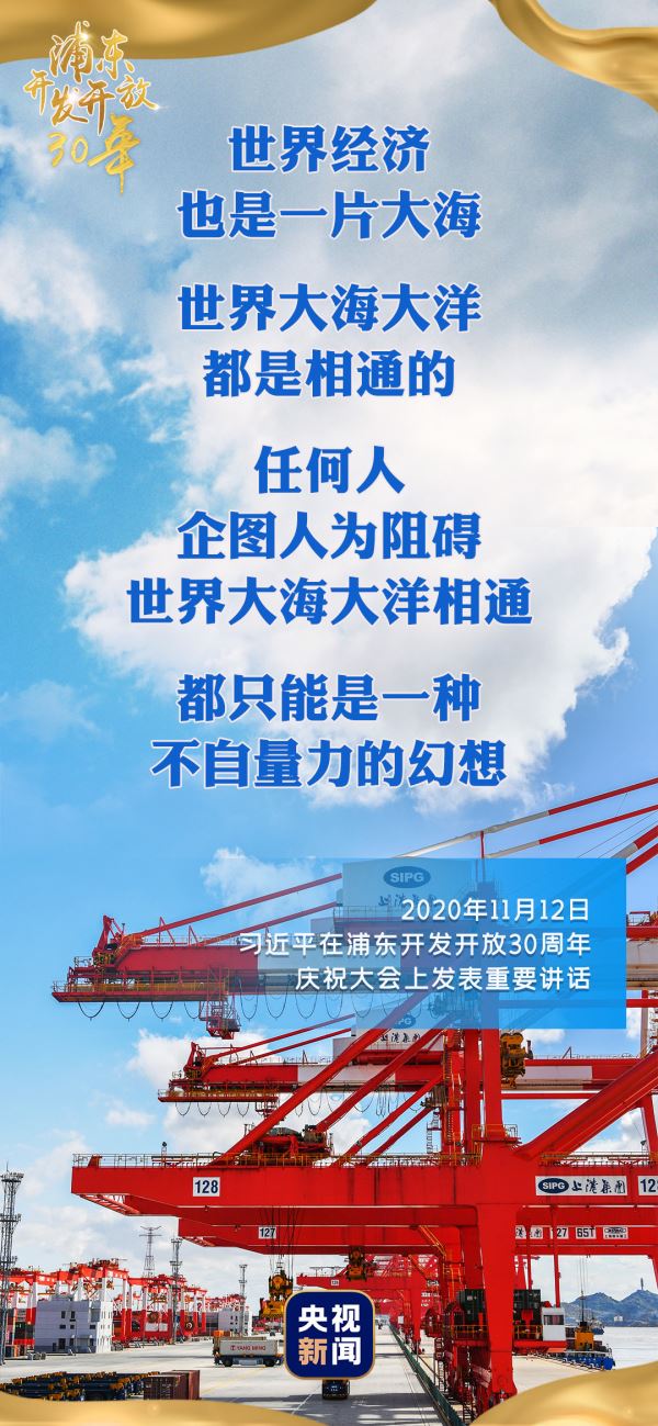 11月12日,浦东开发开放30周年庆祝大会在上海举行。中共中央总书记、国家主席、中央军委主席习近平发表重要讲话。