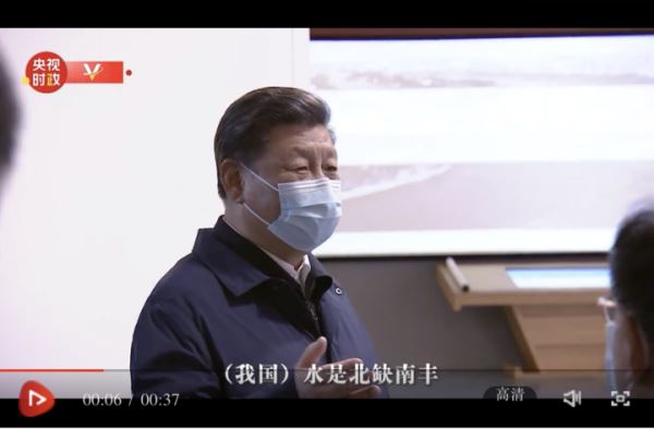 习近平感慨地说:“南水北调,我很关心,这也是国之大事。(我国)水是北缺南丰,所以一定要科学调剂。但是不能因为我们有这样的措施以后,北方地区就随意用水,这是不行的。我们现在都是要以水定市、以水定业。所以南水北调与我们的就地节水要紧密地结合起来,这两手都要同时抓。”