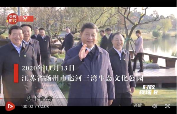 2020年11月13日,习近平总书记来到江苏省扬州市运河三湾生态文化公园,了解大运河沿线环境整治和文化保护传承利用等情况。