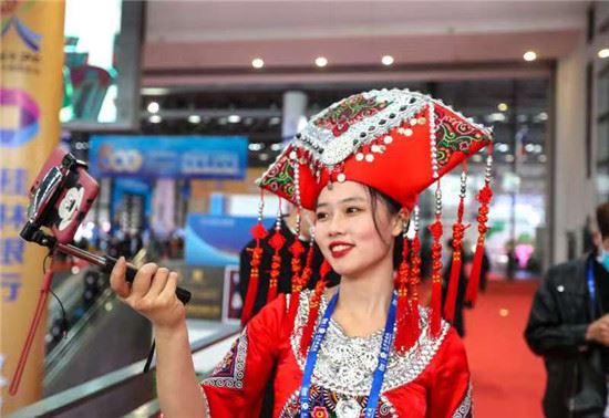 一名广西主播正在对展会进行直播。广西日报记者周军/摄