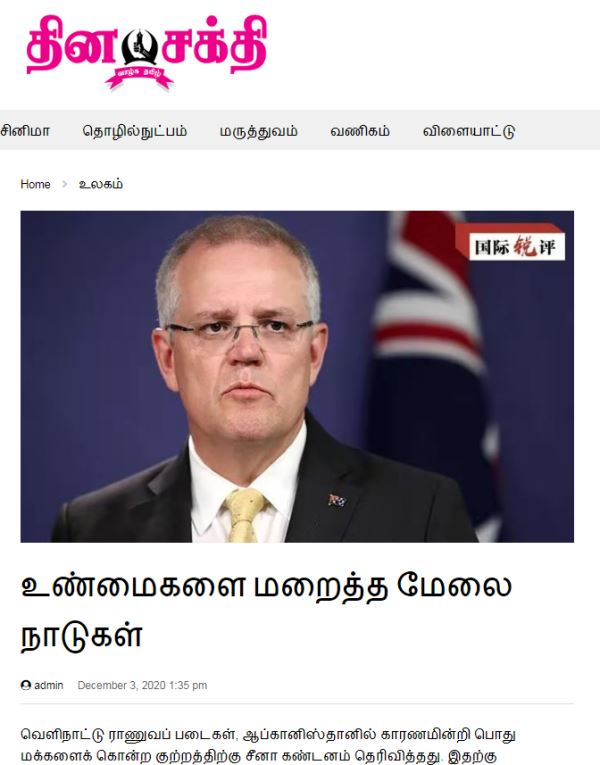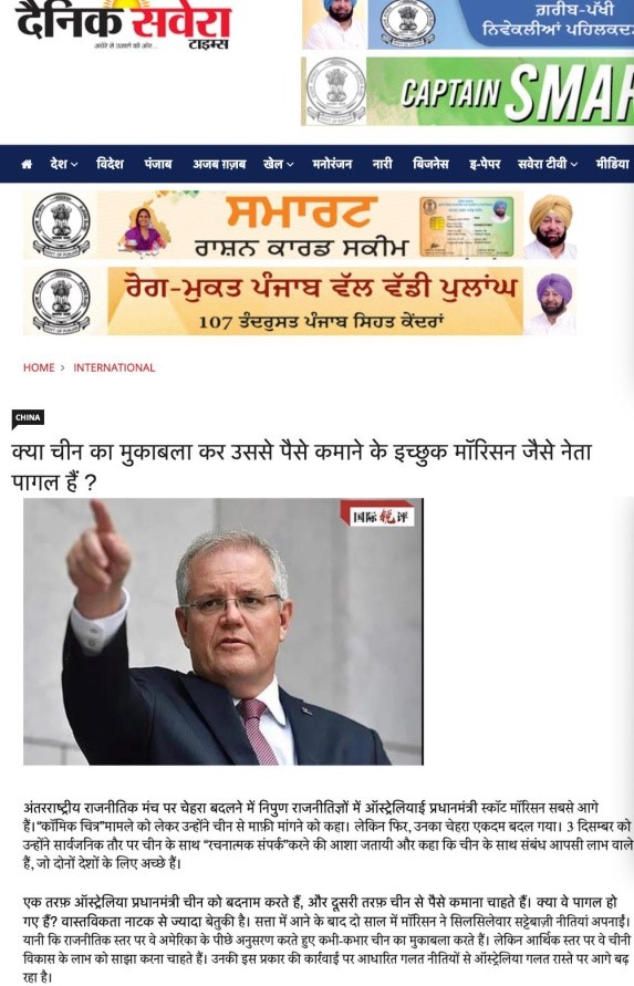 印度《每日力量报》、《每日晨报》连续转引国际锐评3篇报道,发表题为《莫里森的言行就像个笑话》《掩盖真相的西方国家》《莫里森的真正目的?》《倒打一耙的莫里森把澳大利亚变成一个悲哀的笑话》的文章。