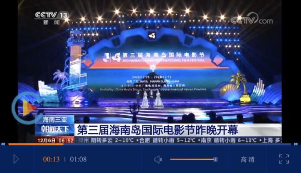 光影传情,全球电影人共相聚。12月5日,由中央广播电视总台与海南省人民政府共同主办的第三届海南岛国际电影节在三亚海棠湾开幕。中宣部副部长、中央广播电视总台台长、第三届海南岛国际电影节组委会主席慎海雄,中共海南省委书记、海南省人大常委会党组书记沈晓明出席开幕式并致辞。慎海雄宣布第三届海南岛国际电影节开幕。