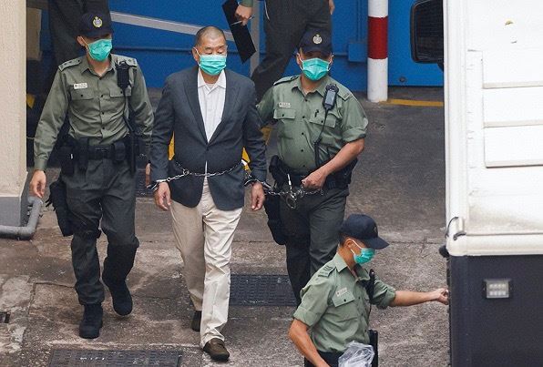 12月12日,黎智英离开收押所,被囚车押解到西九龙法院提讯。