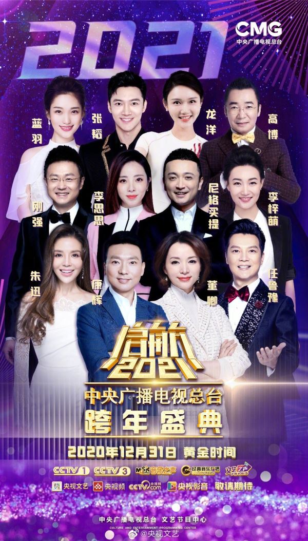 12月31日黄金时间,与总台主持人康辉、董卿、任鲁豫、朱迅、尼格买提、李思思、刚强、李梓萌、张韬、龙洋、高博、蓝羽一起,相约《启航2021——中央广播电视总台跨年盛典》。CCTV-1综合频道、CCTV-3综艺频道、音乐之声、经典音乐广播、文艺之声、央视文艺、央视频、央视网、央视影音同步播出,我们不见不散。