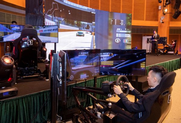 △车手现场进行《擎动中国》线上模拟器赛车挑战赛
