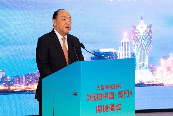 12月26日下午,中央广播电视总台大型4K纪录片《航拍中国·澳门》开机仪式在澳门特别行政区政府总部举行。澳门特别行政区行政长官贺一诚,中宣部副部长、中央广播电视总台台长兼总编辑慎海雄出席活动并致辞,并与中央人民政府驻澳门联络办公室副主任张荣顺共同启动《航拍中国·澳门》开机仪式。中央人民政府驻澳门联络办公室副主任严植婵,总台及澳门特别行政区政府相关部门负责人等出席活动。