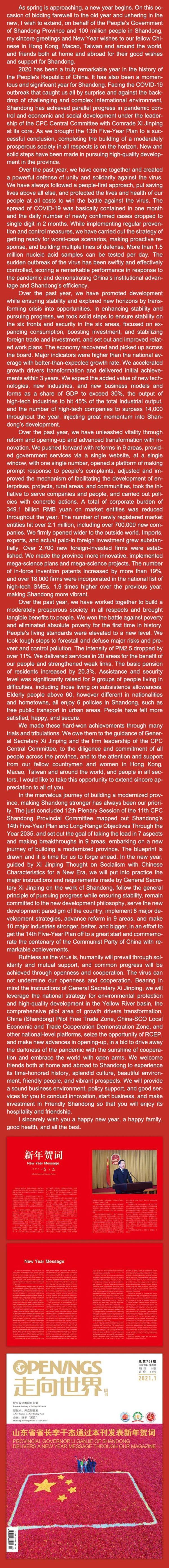 山东省省长李干杰向海内外朋友发表2021年新年贺词