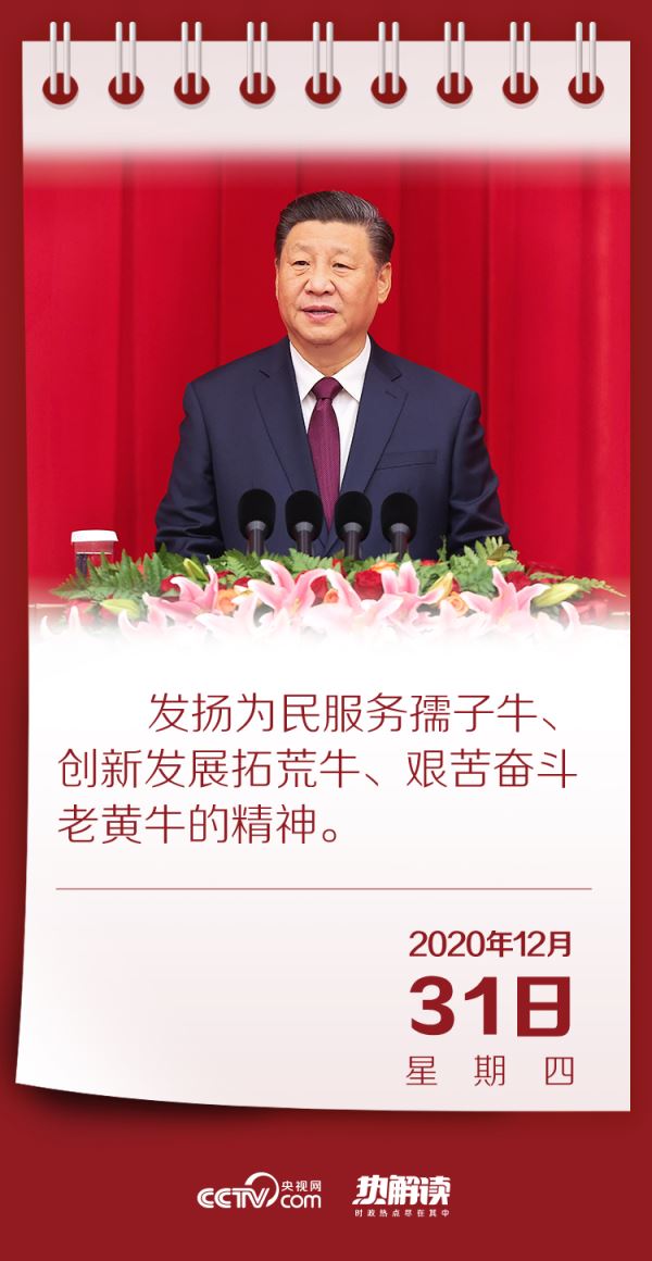 2021年正是农历辛丑年——牛年。孺子牛、拓荒牛、老黄牛,总书记用中华传统文化中十二生肖的动物形象,生动展现出中国共产党的为民初心和中华儿女的奋斗精神,而这恰是极不平凡的2020年里中国人民砥砺奋进的鲜明印记。