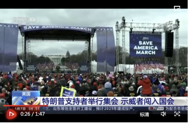 当地时间6日中午,美国总统特朗普的支持者在首都华盛顿举行大规模支持特朗普和反对拜登当选的示威游行活动,示威者与警方发生冲突并闯入国会,导致当天的大选结果认证程序暂停。