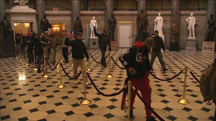 国会警察称,当天下午,国会大厦的封锁线被抗议者攻破,人群闯入国会,与警方在国会内部也发生了冲突。