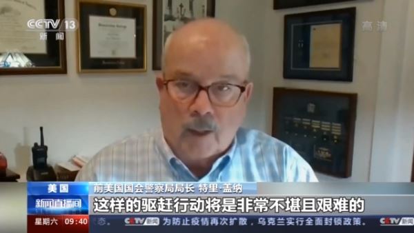 前美国国会警察局局长 特里·盖纳:应该有全副武装的警员出来,把示威者从台阶和平台上赶下来。如果你没有强大的力量, 这样的驱赶行动将是非常不堪且艰难的。