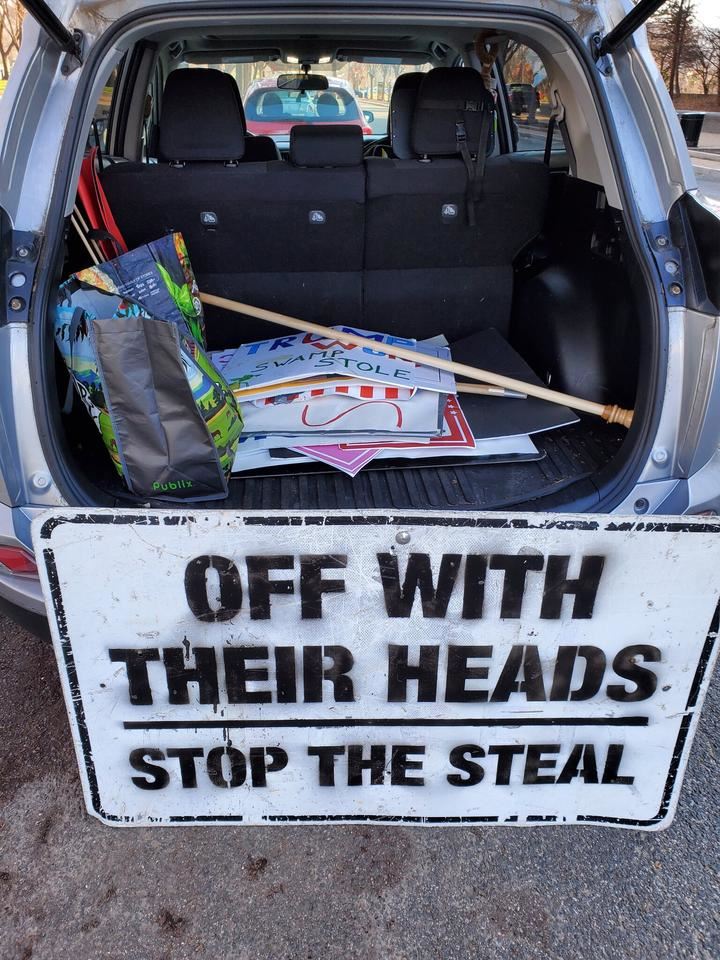 布拉奇克目前收集的物品包括抗议者携带的条幅、标语等。其中大都是关于支持特朗普言论的口号,诸如“停止偷窃选票!”“特朗普赢了!”“选举舞弊”等。