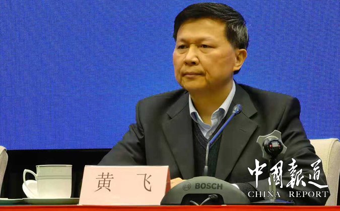 图为省卫生健康委副主任、一级巡视员黄飞介绍情况