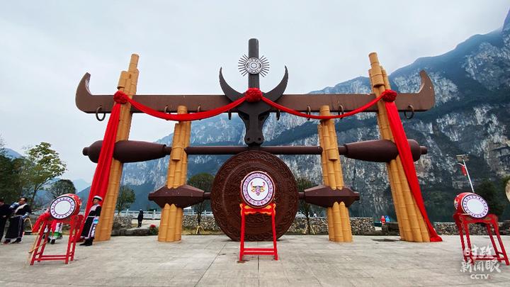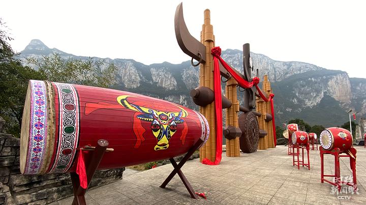 △化屋村文化广场,牛角是苗族图腾之一。(总台央视记者张宇、李辉拍摄)