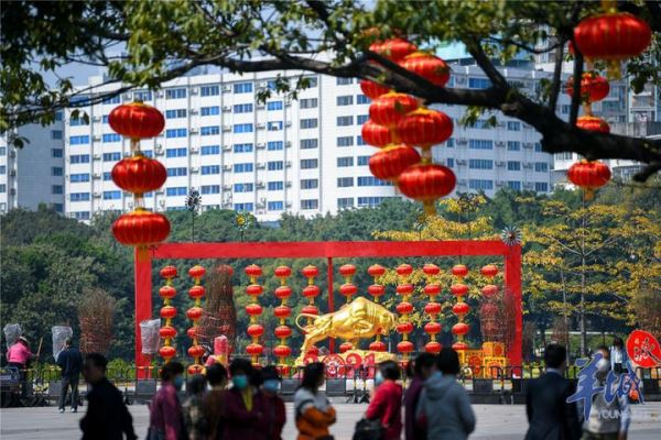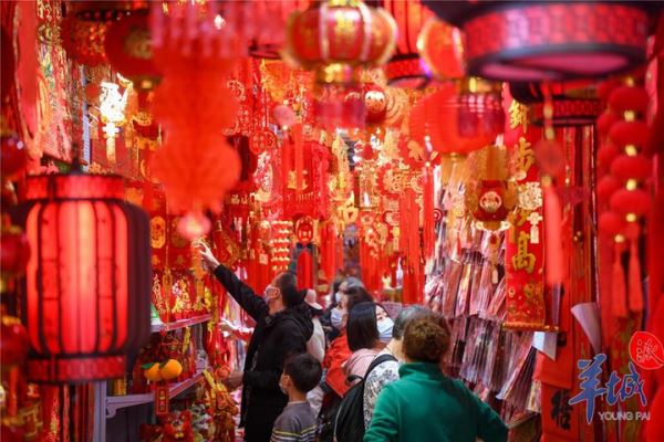 Ano Novo Chinês está a vir, atmosfera de festival está cheia em todos os lados em Cantão