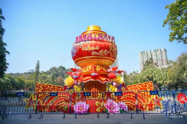 No portal este do Parque Yuexiu, enorme cesto de flores apareceu