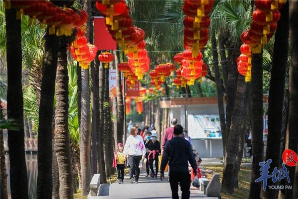 越秀公园东秀湖旁的道路上挂满了红灯笼