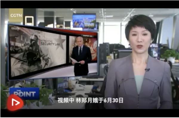 一则新闻视频是7月1日BBC在YouTube上发布的报道,视频援引香港《苹果日报》创始人黎智英的评论称,这部法律为香港敲响了丧钟;而BBC将黎称为“民主运动人士”。与此相对照的是,节目采访了一位名叫林琳的女子,她也是节目中唯一一位支持国安法的被采访者。而BBC给她的头衔是“亲北京的立法会议员”。两个称谓看似不动声色,却带有明显的倾向性,蓄意影响了被采访者的可信度。