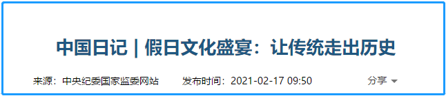 2月17日,中央纪委国家监委网站发布文章《中国日记丨假日文化盛宴:让传统走出历史》,解析了《典籍里的中国》火起来的关键原因。