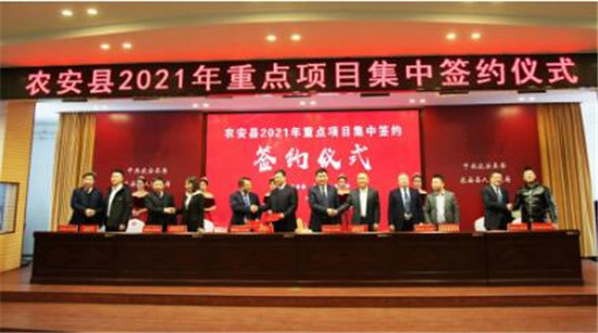 本网讯 5日,吉林省农安县举行2021年重点项目集中签约仪式,48家企业分别与农安县政府签订合作协议,总签约额达279.8亿元。