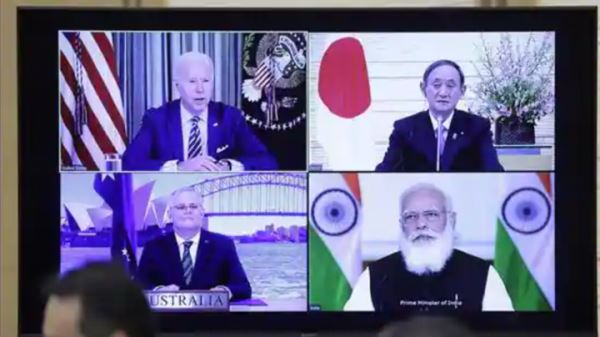 ▲美国总统拜登(左上)、日本首相菅义伟(右上)、澳大利亚总理斯科特·莫里森(左下)、印度总理纳伦德拉·莫迪(右下)于3月12日进行线上四方安全对话。