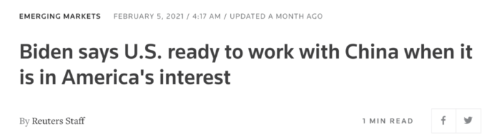 ▲路透社:拜登称美国愿意在符合美国利益的情况下与中国合作