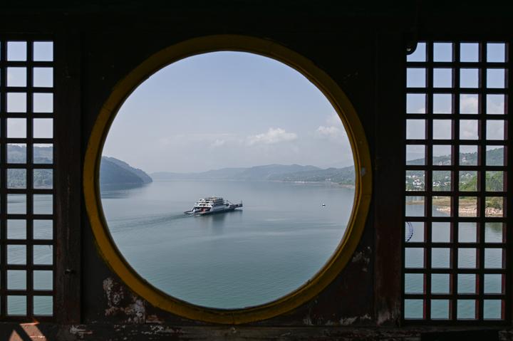 图为从石宝寨内远眺长江。何蓬磊 摄