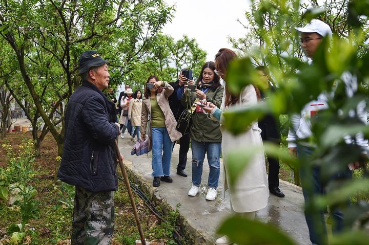 (图为3月26日,海外华文媒体参访团在巫山县曲尺乡采访农户。 何蓬磊 摄)