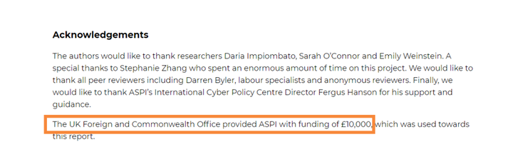 ▲英国外交和联邦事务部为ASPI提供了10000英镑的资金支持