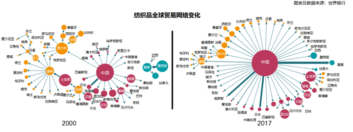 2017年,世界银行公布“纺织品全球贸易变化”数据图。