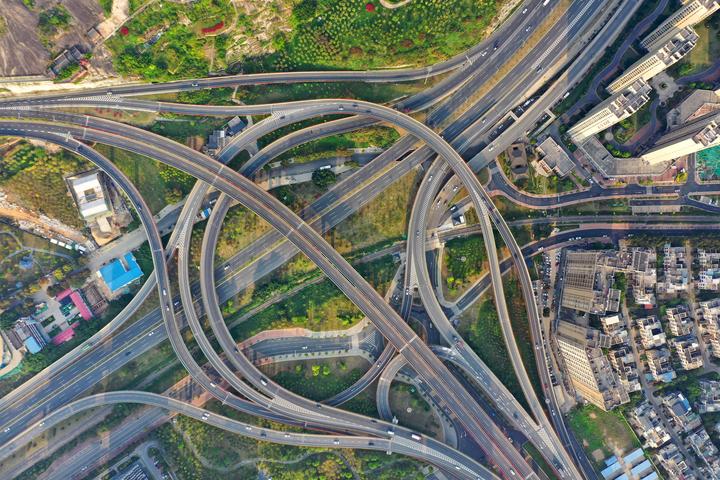 5日,鸟瞰位于福州市马尾区三江口大桥北接线枢纽互通。据了解,四通八达的互通路网,是三江口大桥的特点之一。作为马尾区最大的交通枢纽,大桥北接线13条匝道构成组合型枢纽互通,桥梁面积7.4万平方米,上跨9处现状福马铁路,同时连接江滨东大道、福马路主干道及机场二期高速公路。也是连接福州市马尾区与仓山区的重要跨江通道,三江口大桥及南北接线枢纽互通是福州市区快速路骨架系统的重要组成部分,也是福州“东进南下”和疏解老城、连接滨海新城的重要节点。该大桥北接线由这13条匝道构成组合型枢纽互通,被不少网友称为“网红”立交桥。目前,三江口大桥及南北接线枢纽互通有效完善三江口片区的交通路网,发挥闽江南北两岸互通主动脉作用。