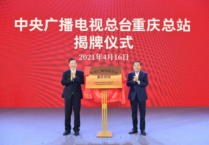 △中宣部副部长、中央广播电视总台台长兼总编辑慎海雄与重庆市委副书记、市长唐良智共同为重庆总站揭牌